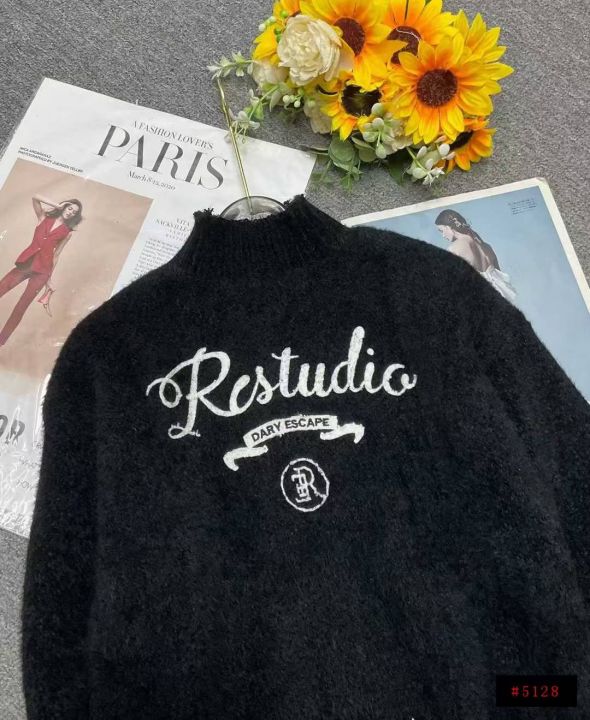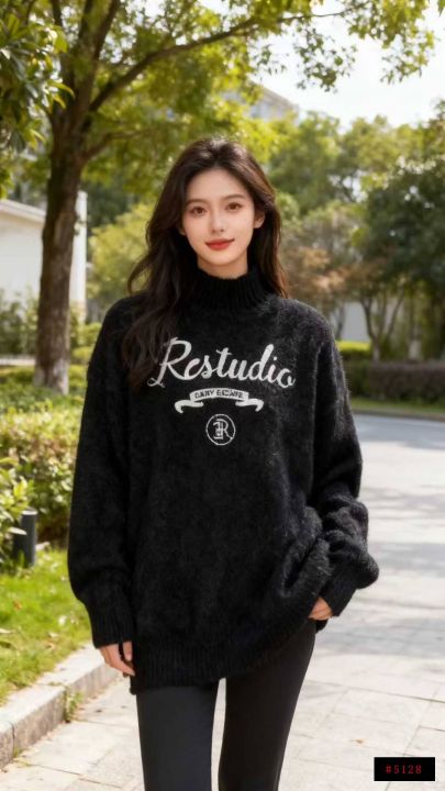秋冬新款高品质女装宽松加厚雪尼尔拼水貂毛套头毛衣,...