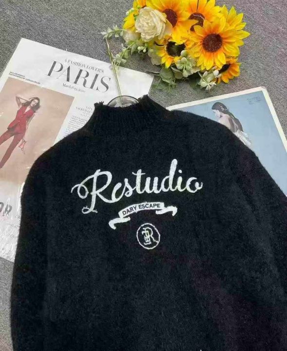 秋冬新款高品质女装宽松加厚雪尼尔拼水貂毛套头毛衣,...