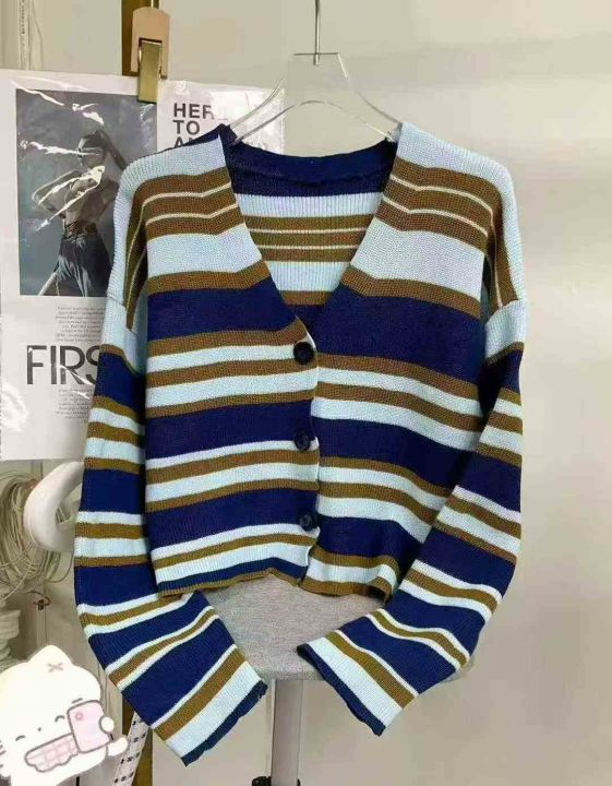 秋季新品软糯撞色条纹宽松慵懒风百搭针织毛衣开衫,独立包装,均码面料软糯舒适弹力大,单款2色,蓝色为主,1600件,全清6.9元超低价秒杀!分货加一!。 货号:1323