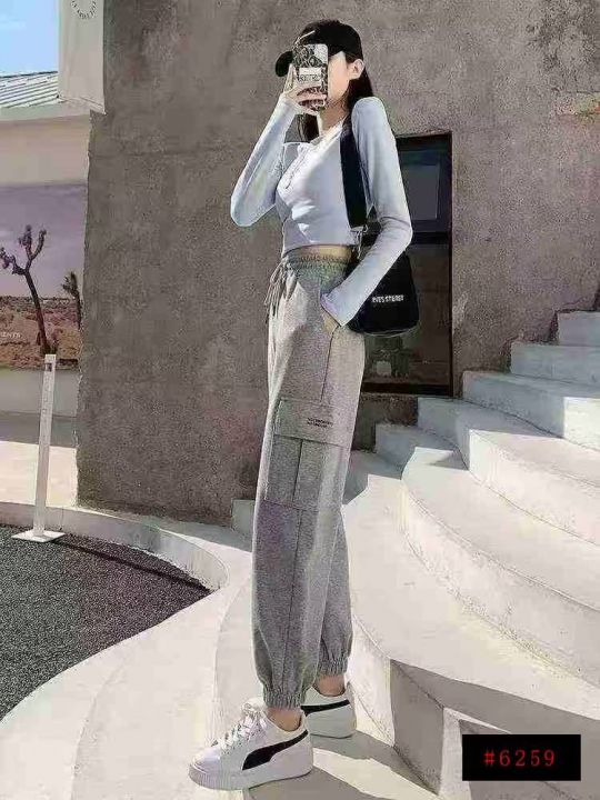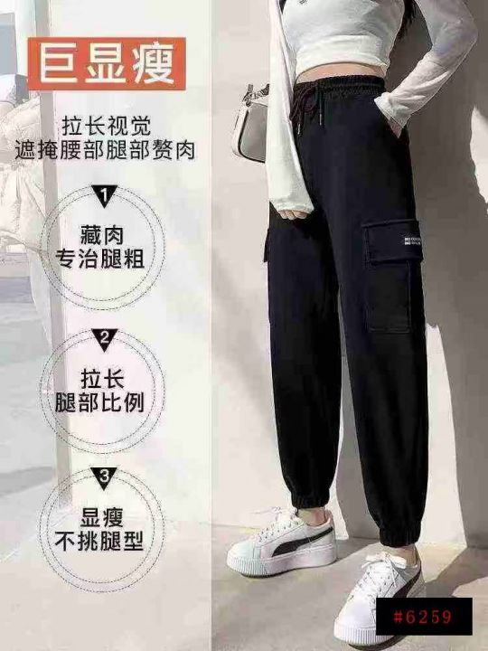 春秋新款工装裤女显瘦高腰黑灰运动裤休闲宽松束脚直筒哈伦卫裤潮,数量205件,码数s-2xl,独立包装,全清7.9元@_@