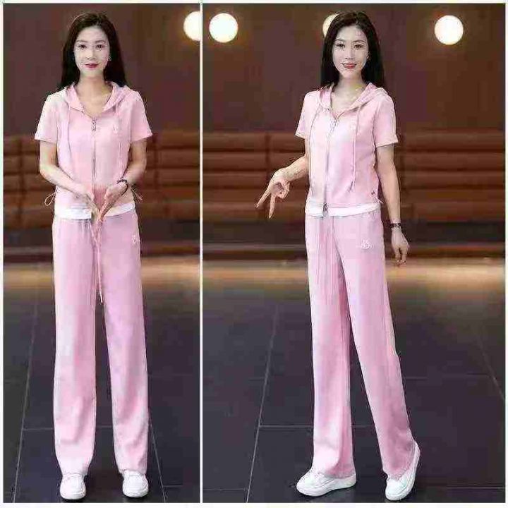 全清12.9连帽卫衣阔腿裤两件套新款显瘦网红炸街休闲时...