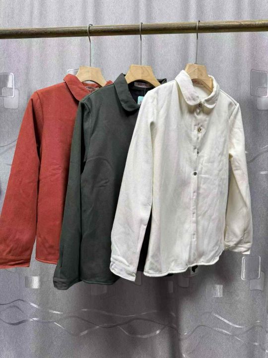 日系简约舒适加厚婴儿绒质感通勤减龄元宝领子母扣保暖长袖衬衫,面布纯棉质量好,独立包装,S - 2 x L码,380件左右,全清7.8块