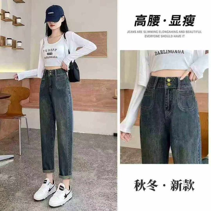 秋季新品复古蓝网红牛仔老爹哈伦裤,独立包装带吊牌,...