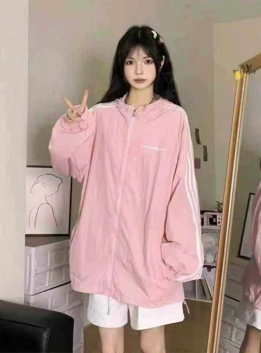 9.9清天猫仓回收194件粉色元气宽松轻薄连帽防晒衣外套...