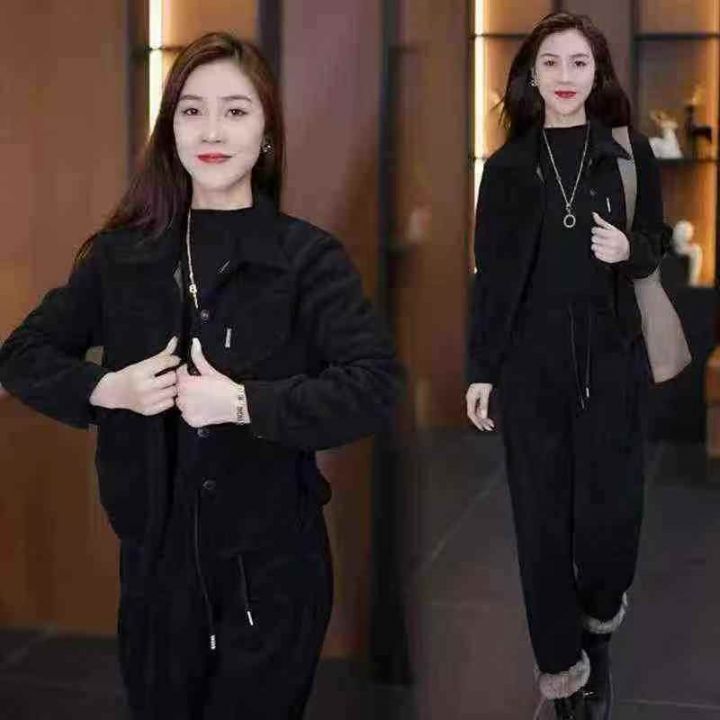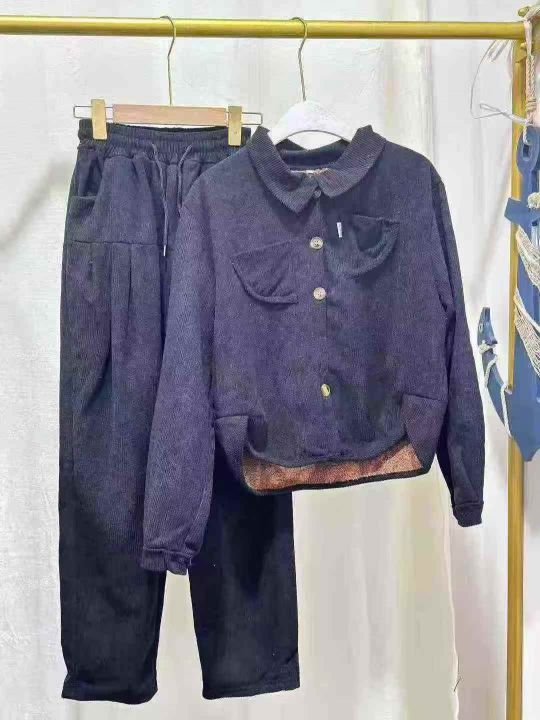 翻领灯芯绒保暖套装女2025冬季加绒加厚宽松显瘦卫衣直筒裤两件套,数量230套,码数mlxl,独立包装,全清17.8元。 货号:1303