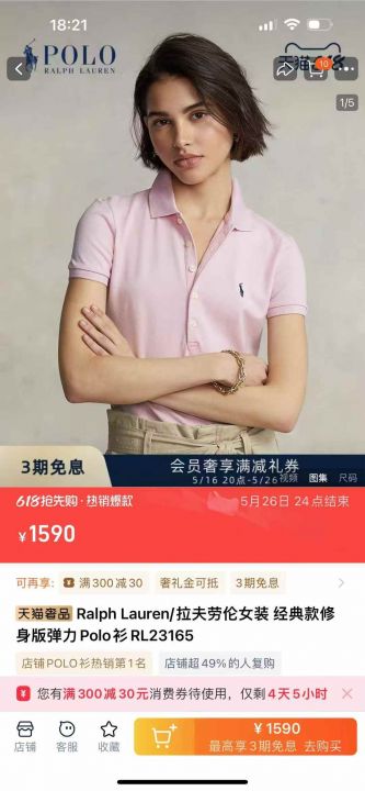 拉夫Polo女装翻领短袖5粒扣,S-XL码颜色多,1100pcs。...