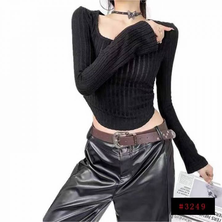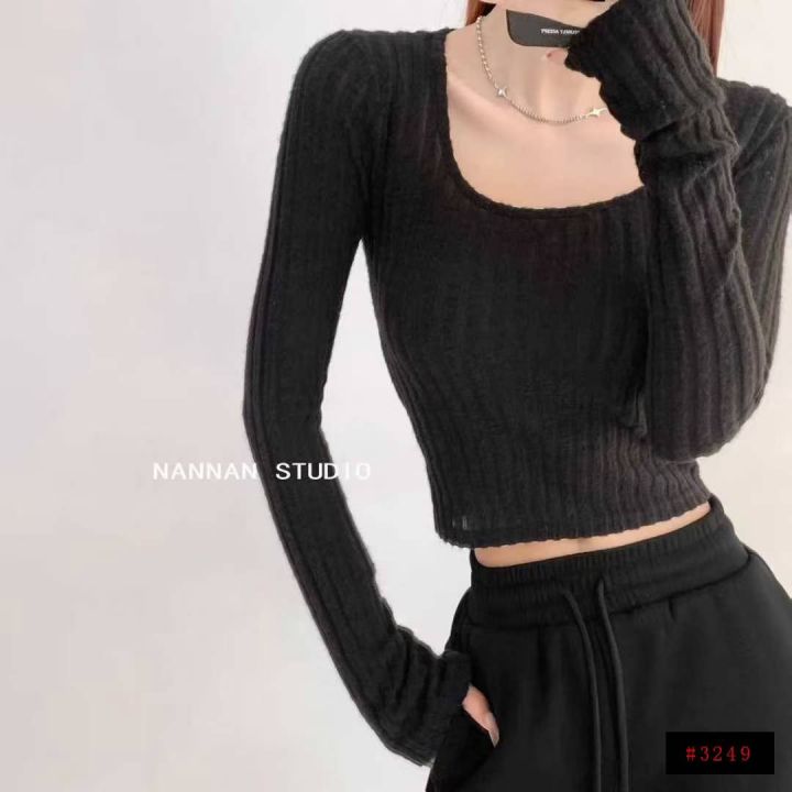 电商仓回收660件黑色辣妹收腰褶皱长袖T恤方领打底衫,码数S-2XL。面料柔软有弹力,百搭收腰显瘦,全部独立包装。分货+0.5@_@