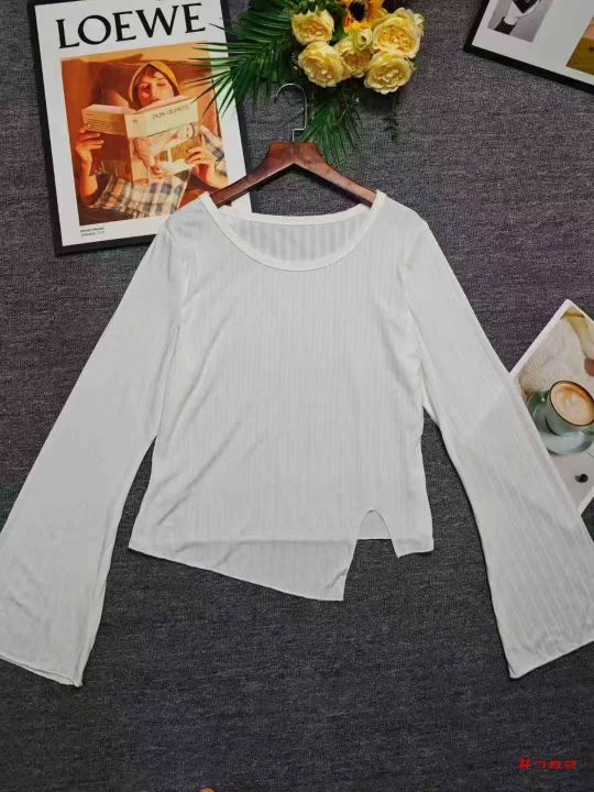 工厂回收582件韩系靓妹白色打底衫不规则设计感长袖T恤,码数S-2XL。面料有弹力,全部独立包装。分货+0.5@_@