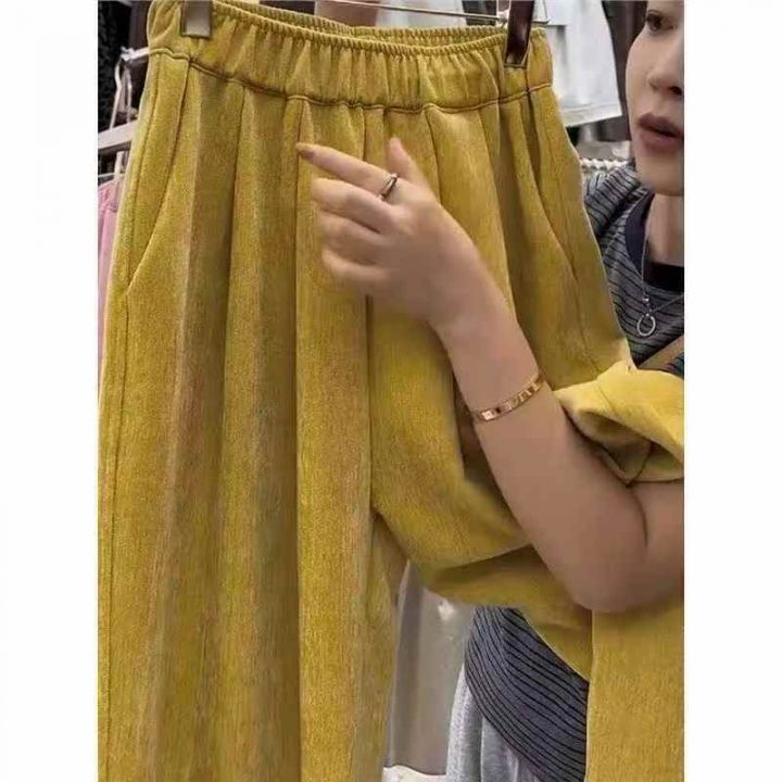 拉夏贝尔黄色复古灯芯绒休闲裤女冬季宽松高腰阔腿,数量120件,码数s-2xl,独立包装,全清5.5元。 货号:1303