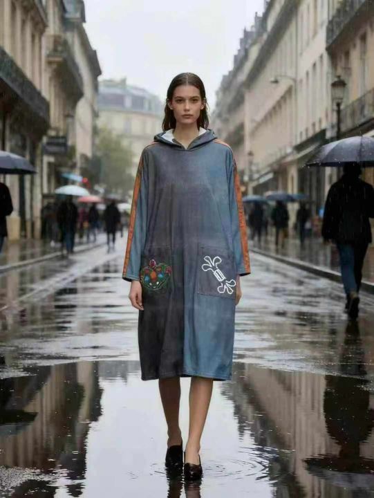 电商仓回收1003件仿牛仔复古小众慵懒风宽松胖MM连帽连衣裙,码数2-4-6码。面料透气舒适,上身宽松显瘦,对身材包容度高。有独立包装,分货➕1