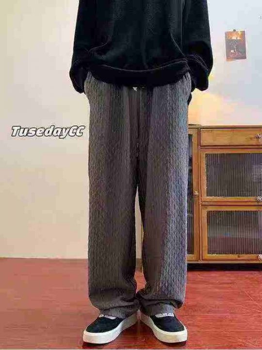 ☕️春夏高级感提花裤子男士设计感小众潮牌宽松直筒阔腿拖地休闲长裤1157条...
