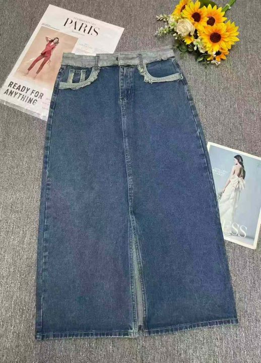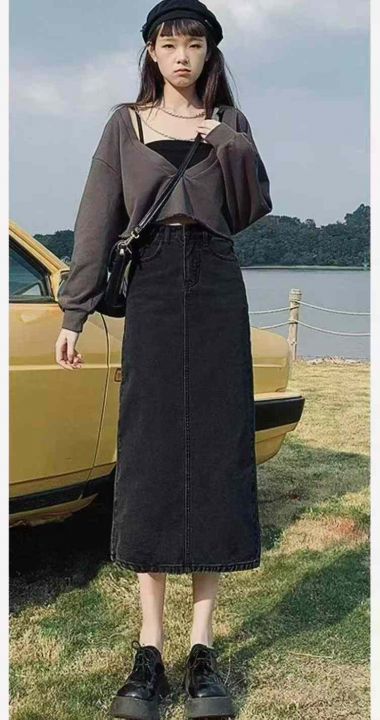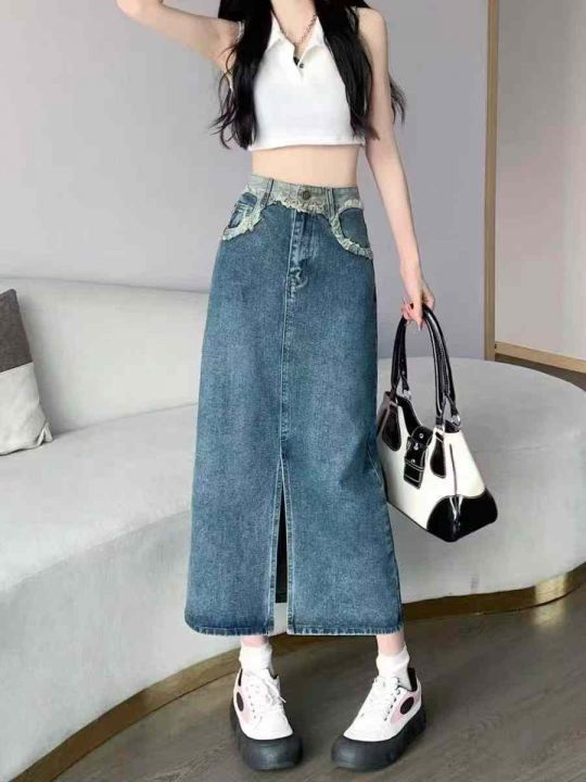 夏秋季新品洗水棉网红复古牛仔半身长裙,独立包装带吊...