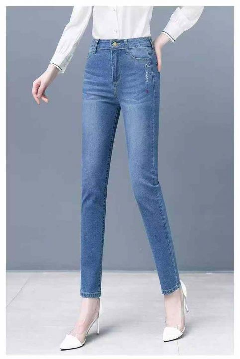 春秋新款高弹力轻熟女装牛仔长裤,独立包装带吊牌,码...