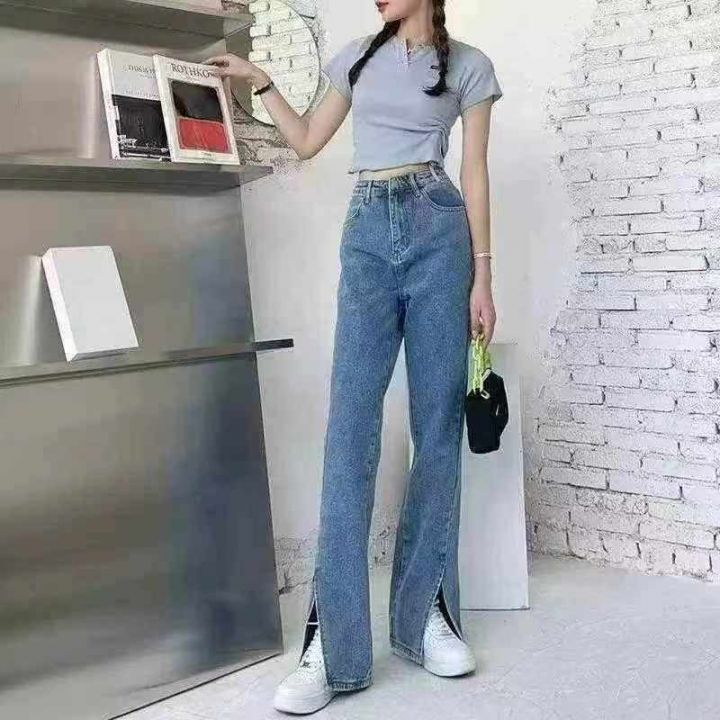 秋季新款洗水棉直筒阔腿开叉设计款牛仔裤,独立包装带...