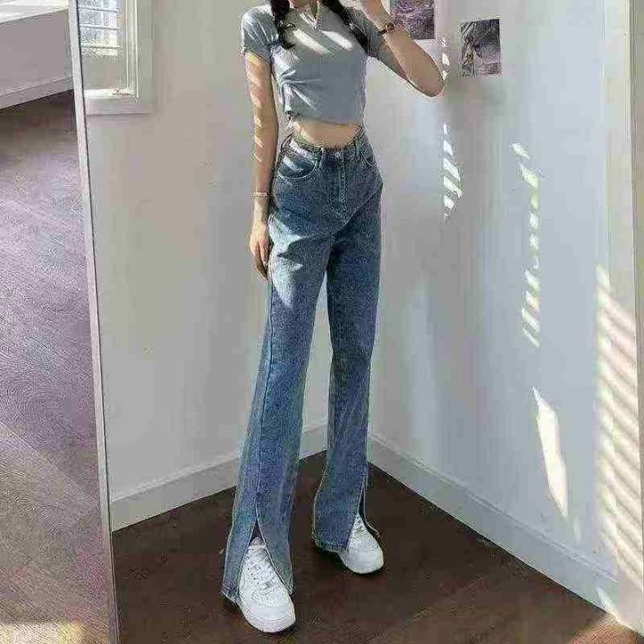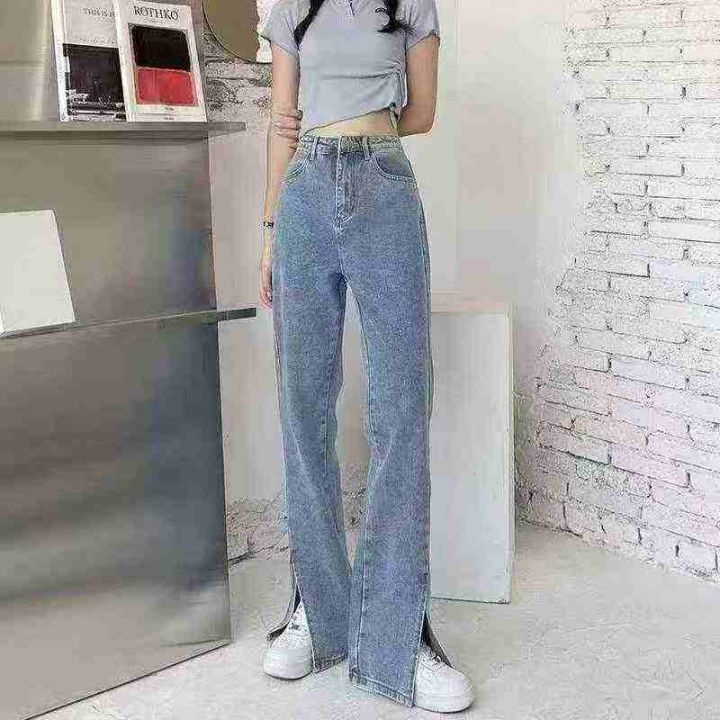 秋季新款洗水棉直筒阔腿开叉设计款牛仔裤,独立包装带...