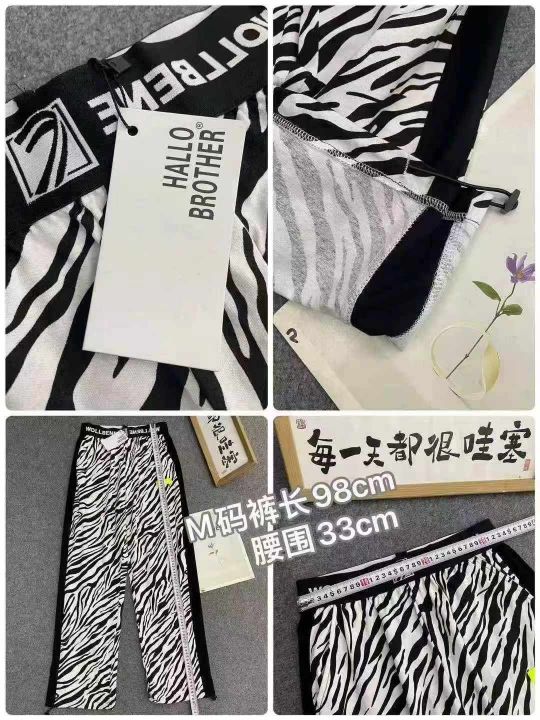 纯棉斑马纹长裤599件8.5,面料舒适透气,松紧腰,有口...