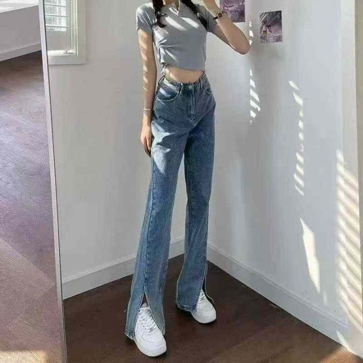 秋季新款洗水棉直筒阔腿开叉设计款牛仔裤,独立包装带...