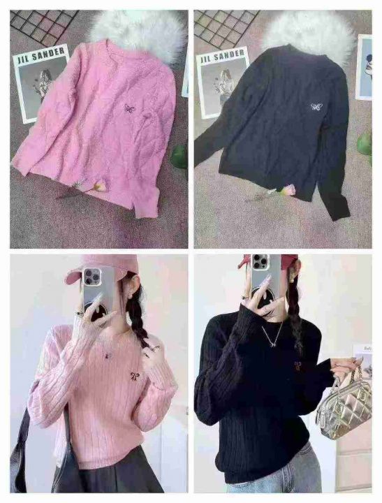 蝴蝶刺绣圆领套头毛衣女长袖秋冬保暖打底小颗粒绒针织衫,独立包装,均码,430件,清6.99元,分货加5毛。 货号:24862