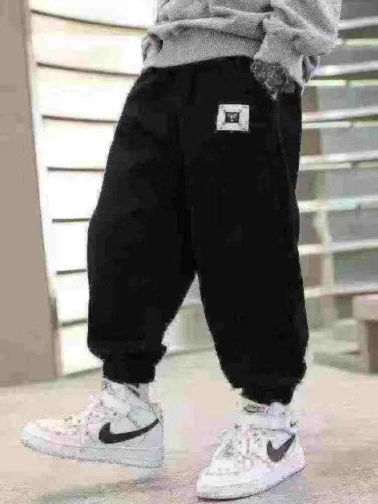 天猫在售款600件左右高品质中大童潮牌春秋款棉质束脚卫裤,单款两色,码数120-170,独立包装带吊牌。 货号:1303