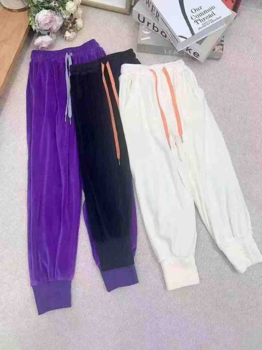 韩版卡通男女中大童金丝绒休闲运动裤.面料柔软亲肤单款三个色·独立包装1-6码760条全清5.5分货加0.5。 货号:24862