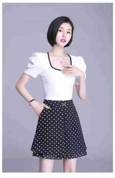 上新全清:2.9一件高腰气质百搭雪纺A字垂感波点裙裤,[爱心]400件左右,码...