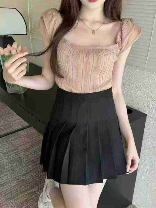 一字领泡泡短袖针织衫法式设计感小众性感短款毛衣露肩上衣,独立包装,均码,1120件,清6.5,分➕1
