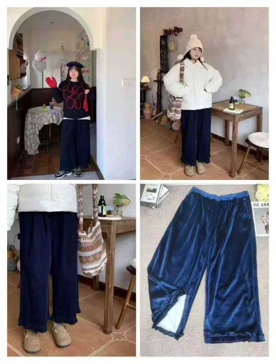 [福]日系宽松慵懒黄金绒阔腿文艺木耳边休闲裤200条左...