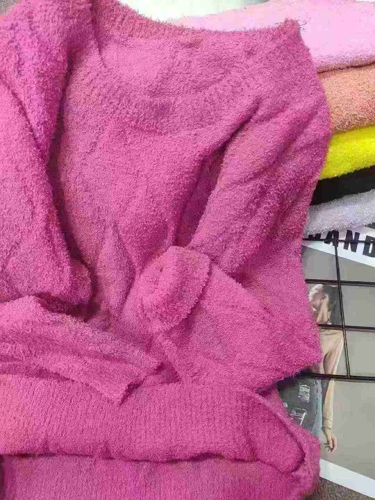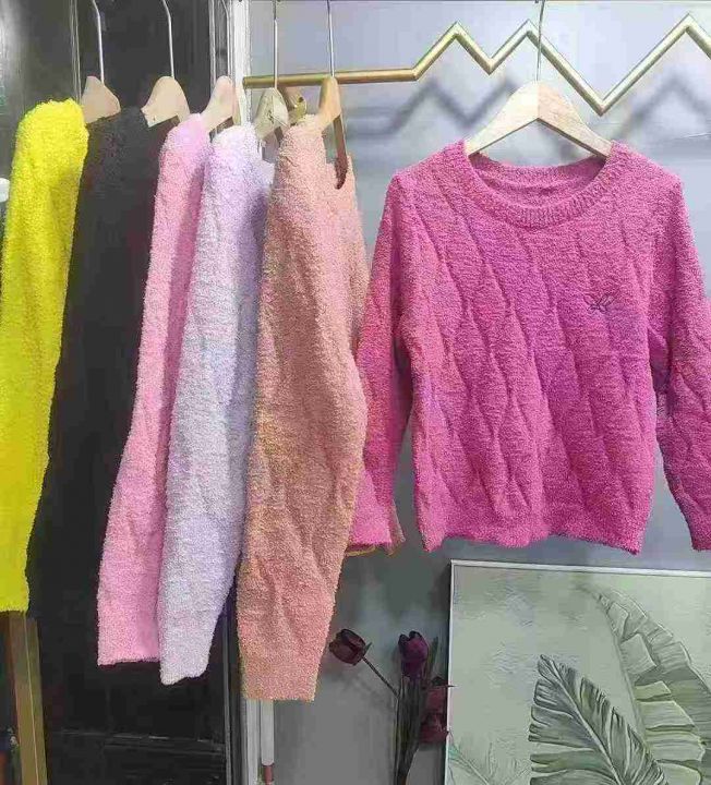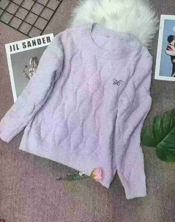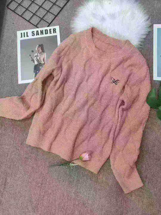 蝴蝶刺绣圆领套头毛衣女长袖秋冬保暖打底小颗粒绒针织衫,独立包装,均码,430件,清6.99元,分货加5毛