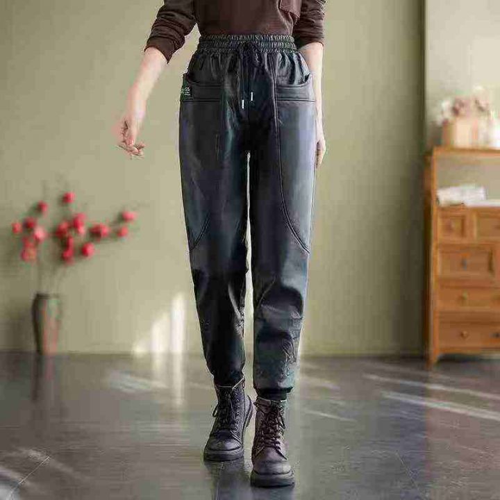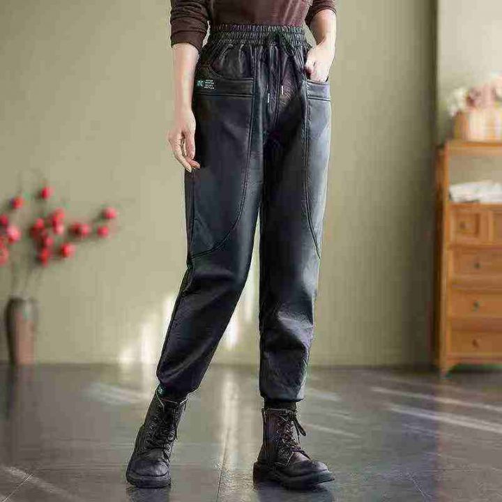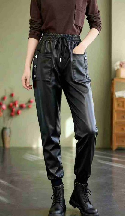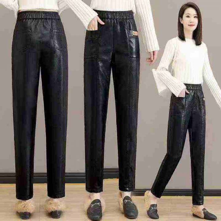 193件冬季新款大码女装加绒加厚女装皮裤,独立包装带...