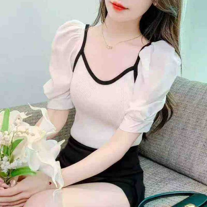 夏季新款复古撞色雪纺拼接针织小衫,独立包装,均码面料柔软舒适弹力大,190件,全清6.9元超低价秒杀!