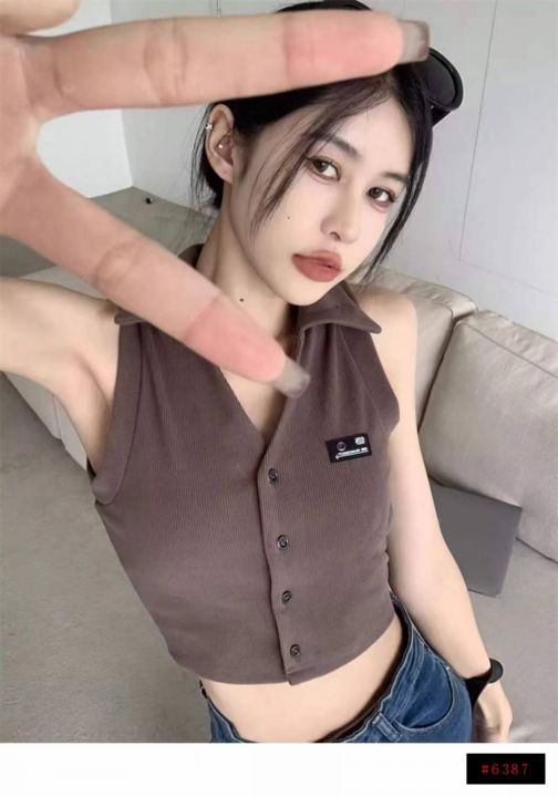 美式复古靓妹背心317件5.9Polo领,胸口小标,两种面料...
