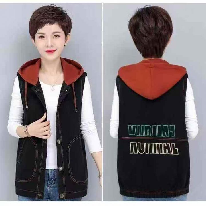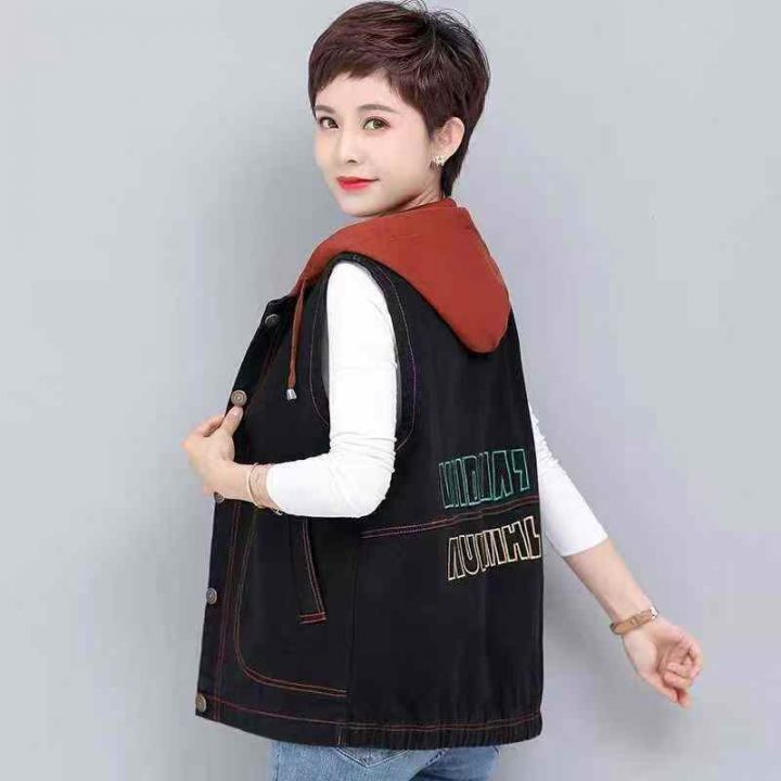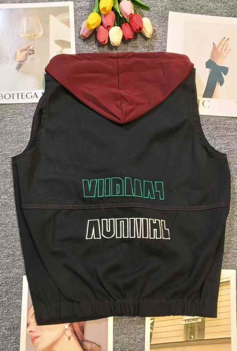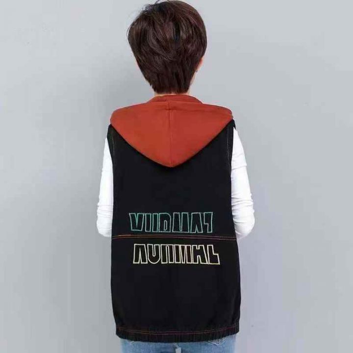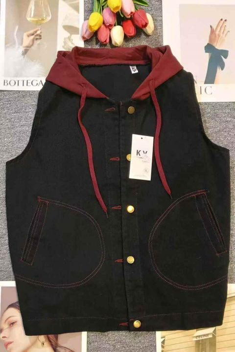 连帽拼接设计感黑色牛仔马甲外套,[爱心]160件左右,码数S-5XL,穿80-160斤,万佳档口货,原包装️无瑕疵,[666]实体店品质,分货加一。 货号:1303