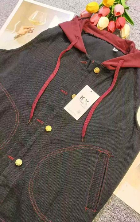 上新全清:11.8一件连帽拼接设计感黑色牛仔马甲外套,...