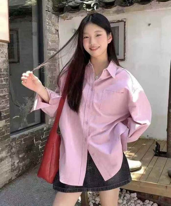 韩系慵懒风宽松百搭遮肉长袖衬衫,[爱心]45件左右,粉色为主,码数1-3,穿80-130斤,万佳档口货,原包装️无瑕疵,[666]实体店品质。 货号:1303