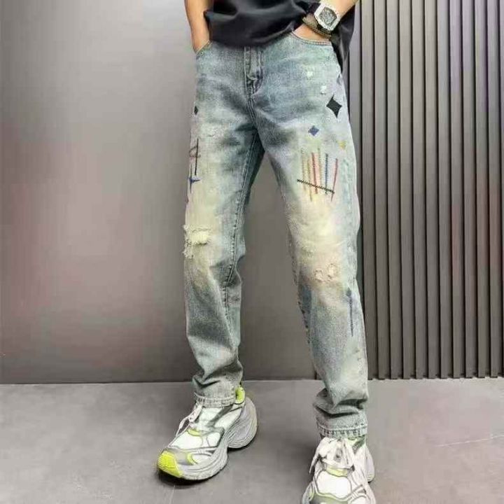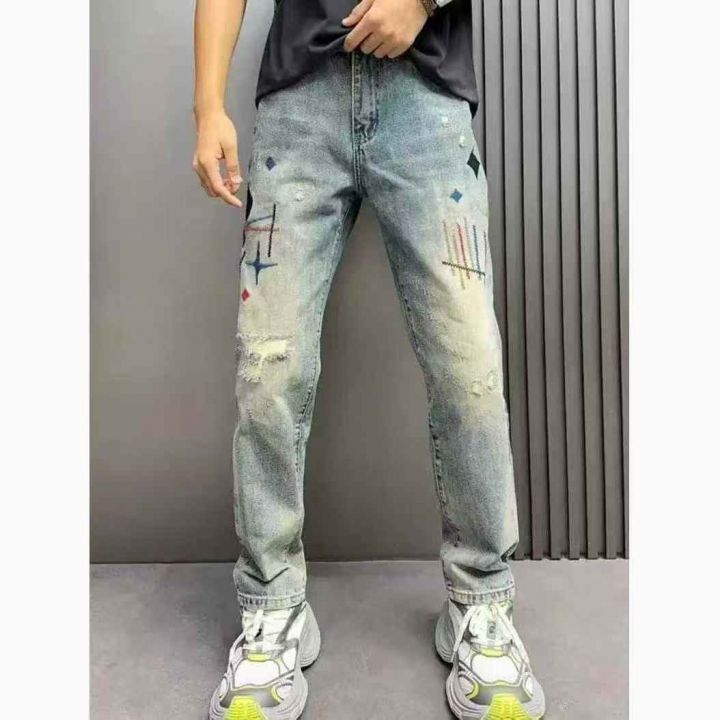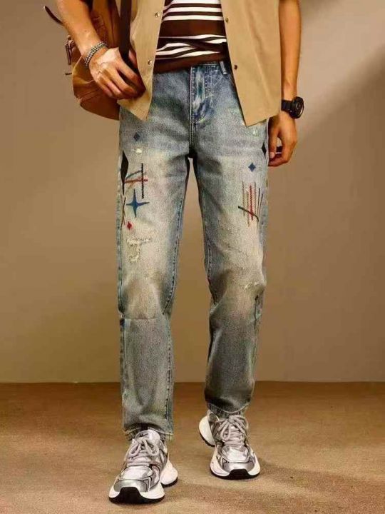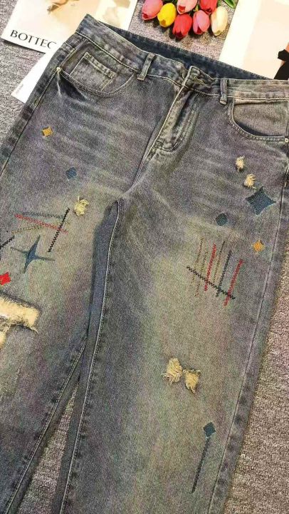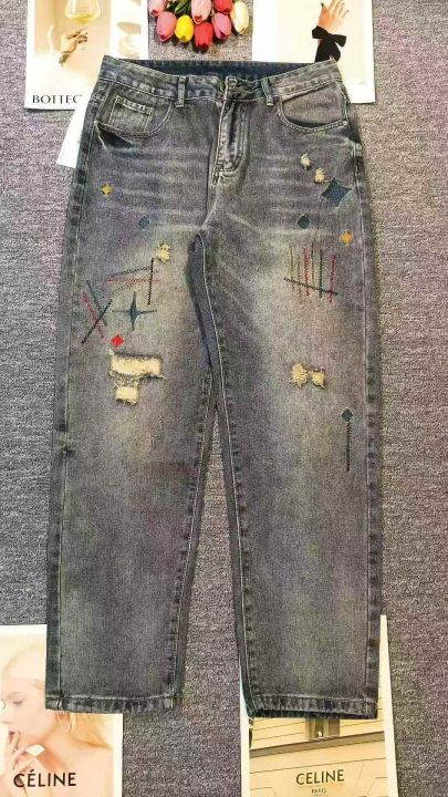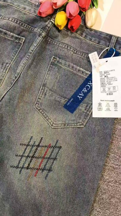 高街复古水洗做旧刺绣潮牌牛仔裤,[爱心]175件左右,款号#A811,码数S-2XL,穿80-150斤,万佳档口货,原包装️无瑕疵,[666]实体店品质,分货加一。 货号:1303