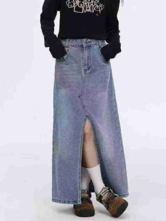 不规则设计感开叉显瘦百搭牛仔半身裙,[爱心]70件左右,S码为主,码数S-L,穿80-130斤,万佳档口货,原包装️无瑕疵,[666]实体店品质