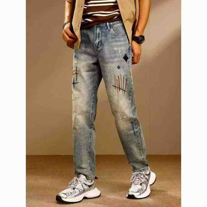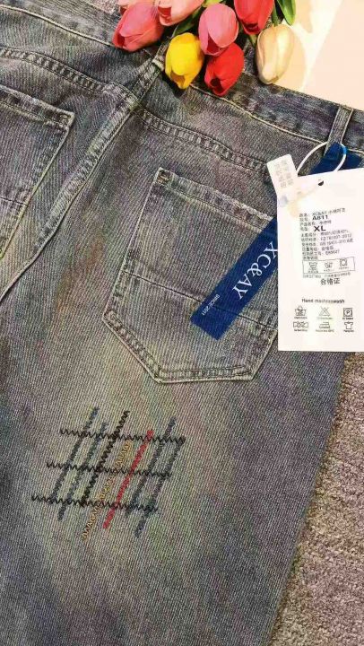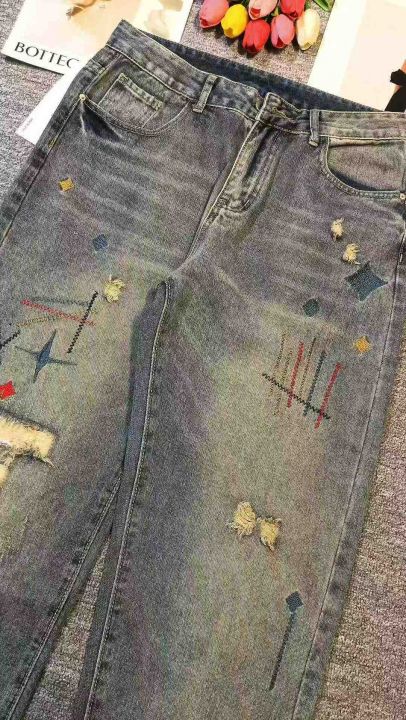 高街复古水洗做旧刺绣潮牌牛仔裤,[爱心]175件左右,款号#A811,码数S-2XL,穿80-150斤,万佳档口货,原包装️无瑕疵,[666]实体店品质,分货加一