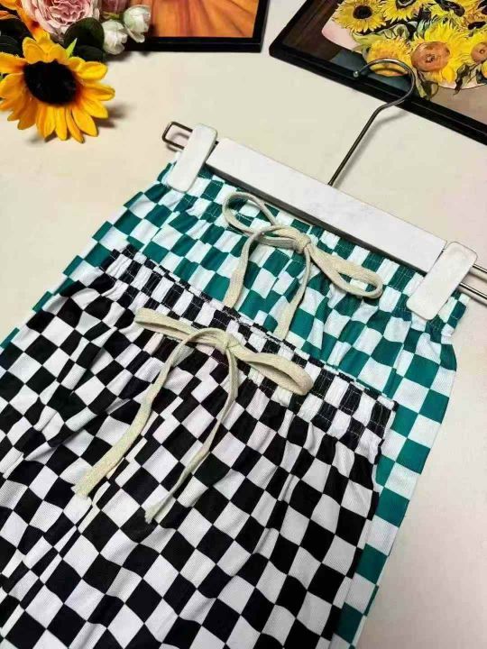 [福]530件左右童装冰丝格子直筒裤,整款两个色,码数:130一160,独立包装,全清4.8。 货号:1303