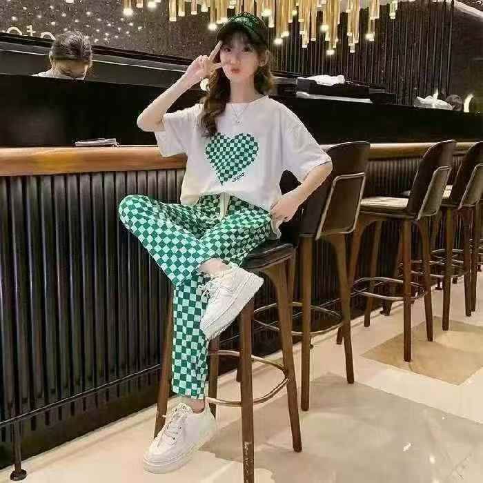[福]530件左右童装冰丝格子直筒裤,整款两个色,码数...