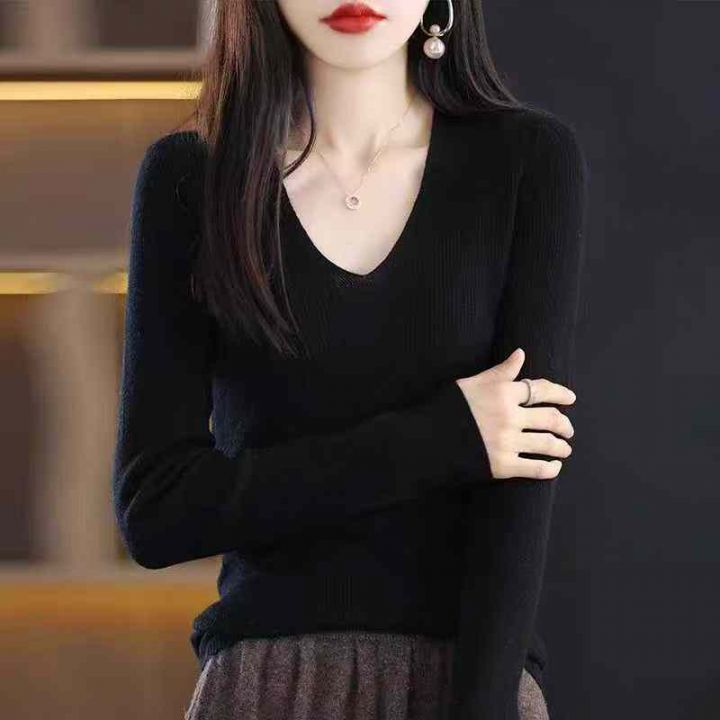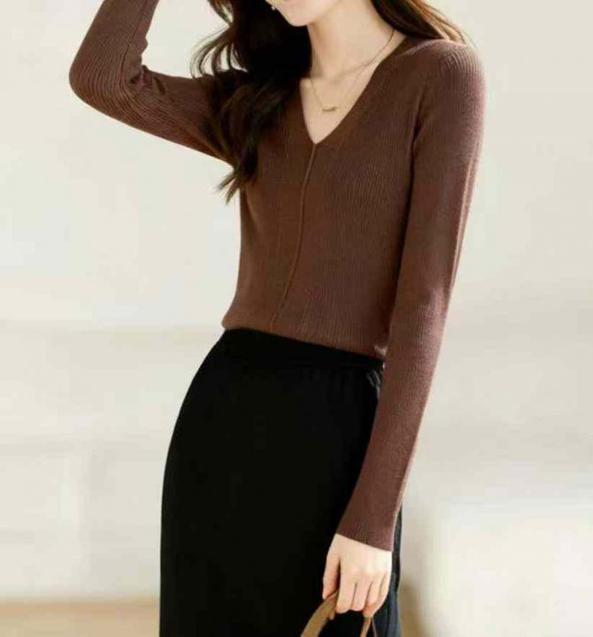 秋冬新款法式V领弹力修身高级显瘦气质打底通勤包芯纱长袖毛衣,独立包装,均码面料软糯舒适弹力大,220件,全清6.9元超低价秒杀!