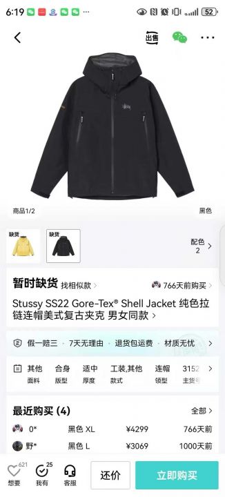 斯图西三合一羽绒有两个颜色内胆可拆卸要的联系
