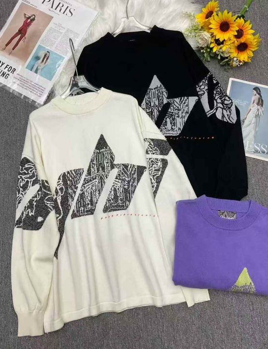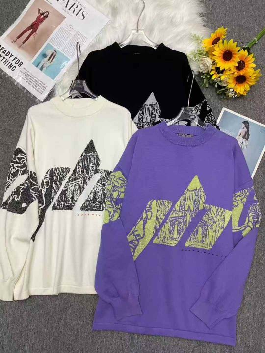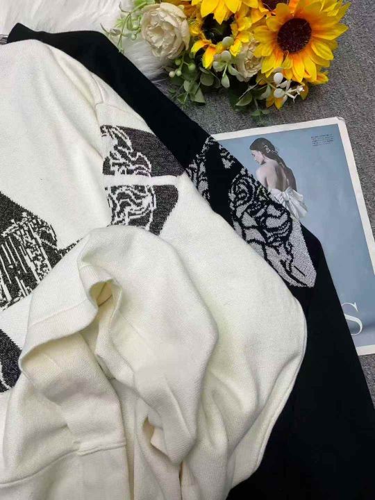 秋冬新款男士潮牌宽松慵懒风提花包芯纱圆领套头毛衣,...