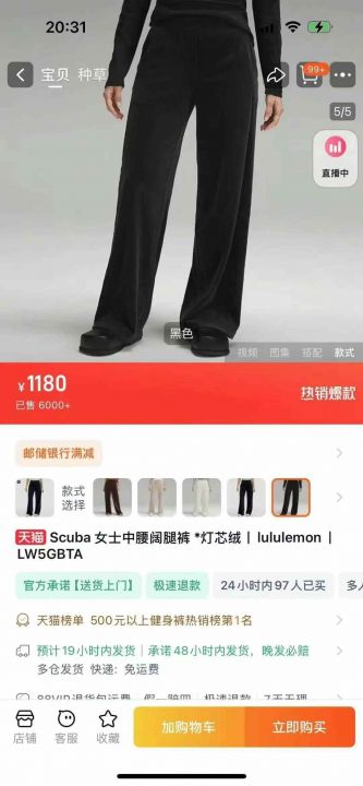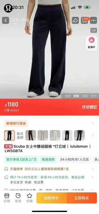 Lulu露露女士阔腿裤金丝绒,S-L码,400条。 货...
