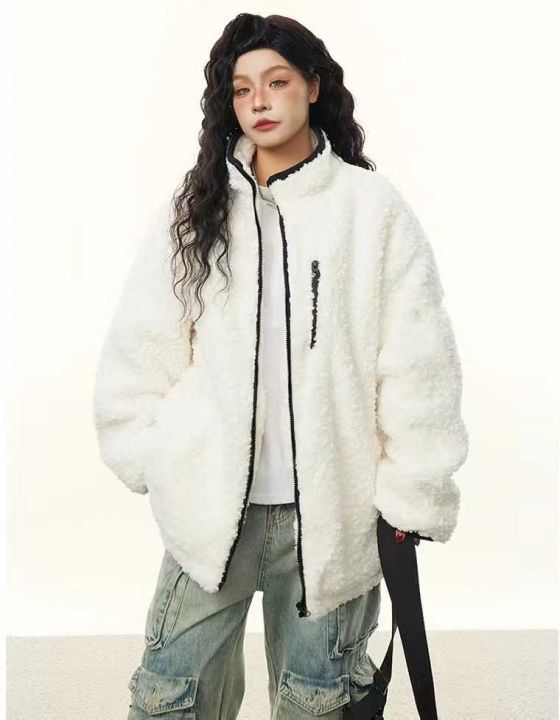 羊羔绒立领外套416件,清12.8,撞色设计,有口袋,码...