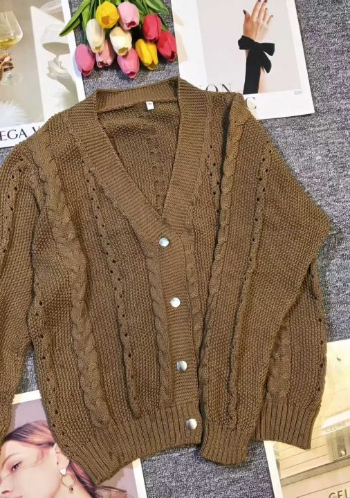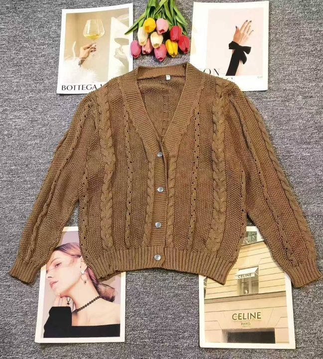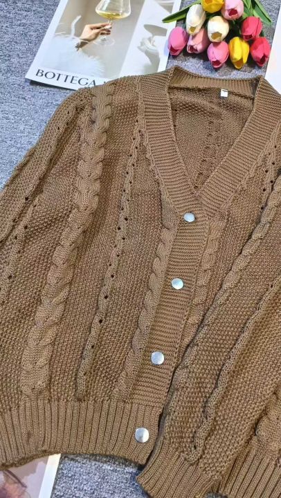 慵懒风V领设计感麻花针织开衫毛衣,50件左右,均码,可穿80-130斤,(模特图仅供参考)工厂原包原吊无瑕疵