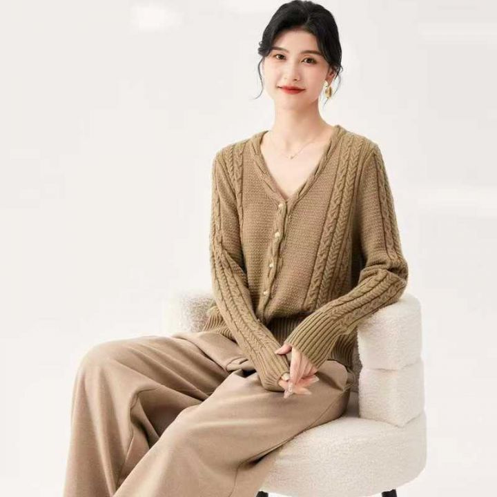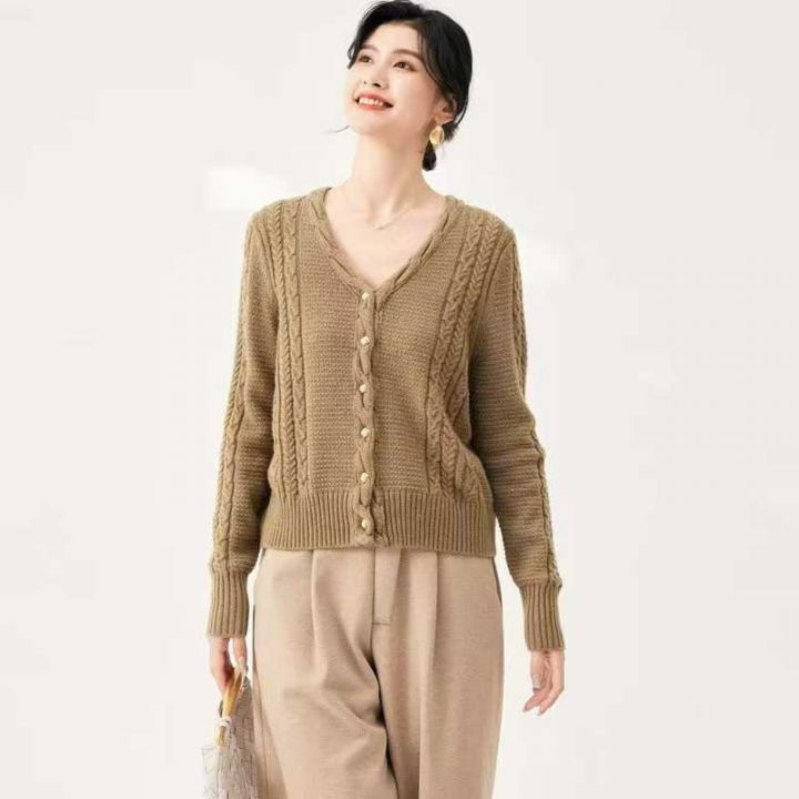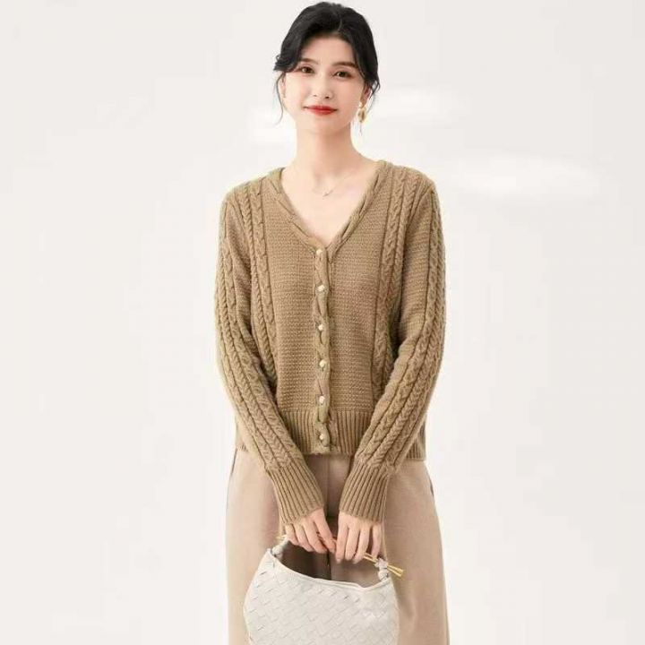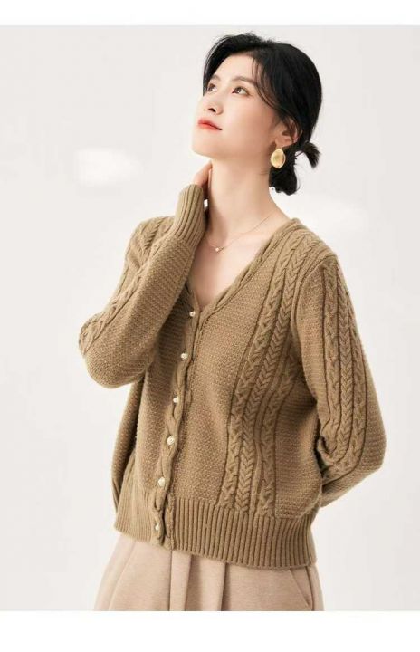 上新全清:6.8一件慵懒风V领设计感麻花针织开衫毛衣,...