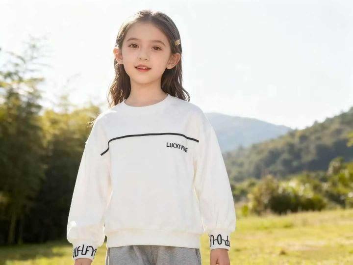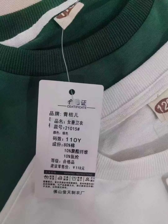 270件左右中大女童卫衣,整款2个色,码数140-150,后领包边,独立包装带吊牌