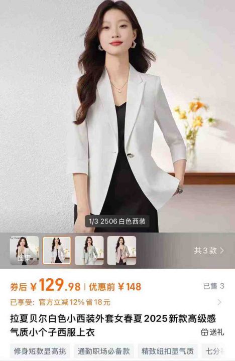 天猫精选200件 天猫在售款 春夏高级感气质小个子西服外套上衣,整款三色,内衬都有包边,做工精细,有肩垫,高品质可入实体店 精美独立包装 S~4XL码 全清13.8元[烟花][烟花][烟花]