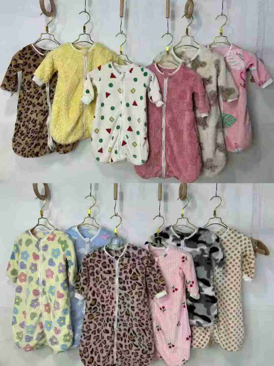 法兰绒珊瑚绒婴幼儿防寒防冻睡袋。面料厚实柔软。双拉链,数量1130件,尺码0-3-6-9-12-18码,独立拉链袋包装,超低价4.9秒杀