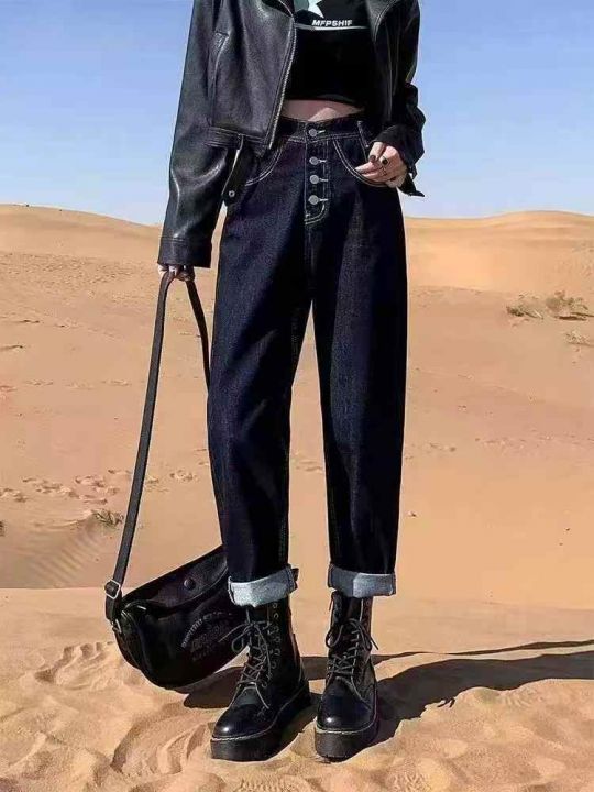秋季新品洗水棉网红爆款高腰宽松牛仔老爹哈伦裤,独立...